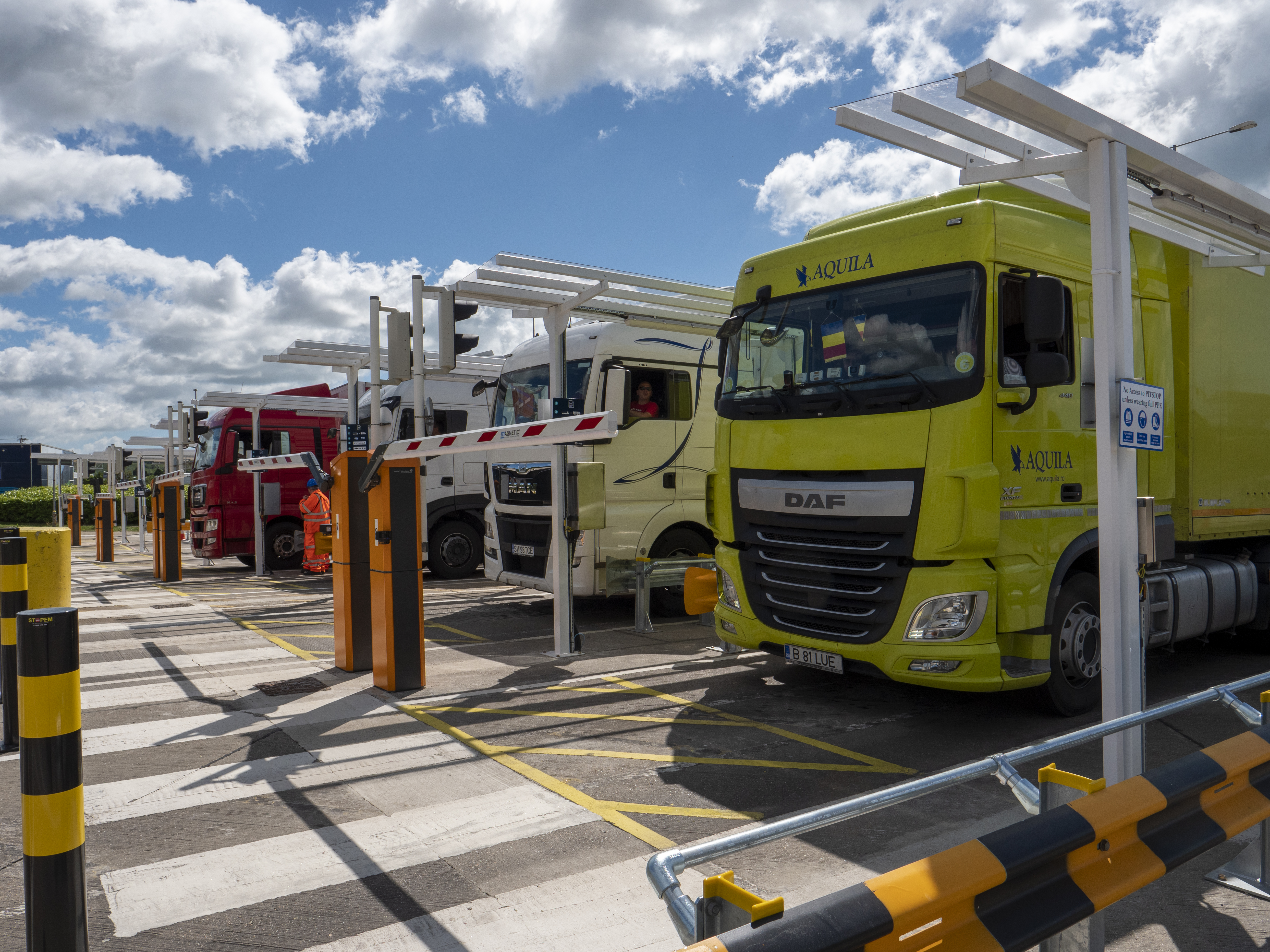 On each terminal, the new Pit-stop regroups in a single area all safety, security and migrant checks besides the scan of all necessary data on trucks and their loads before loading.