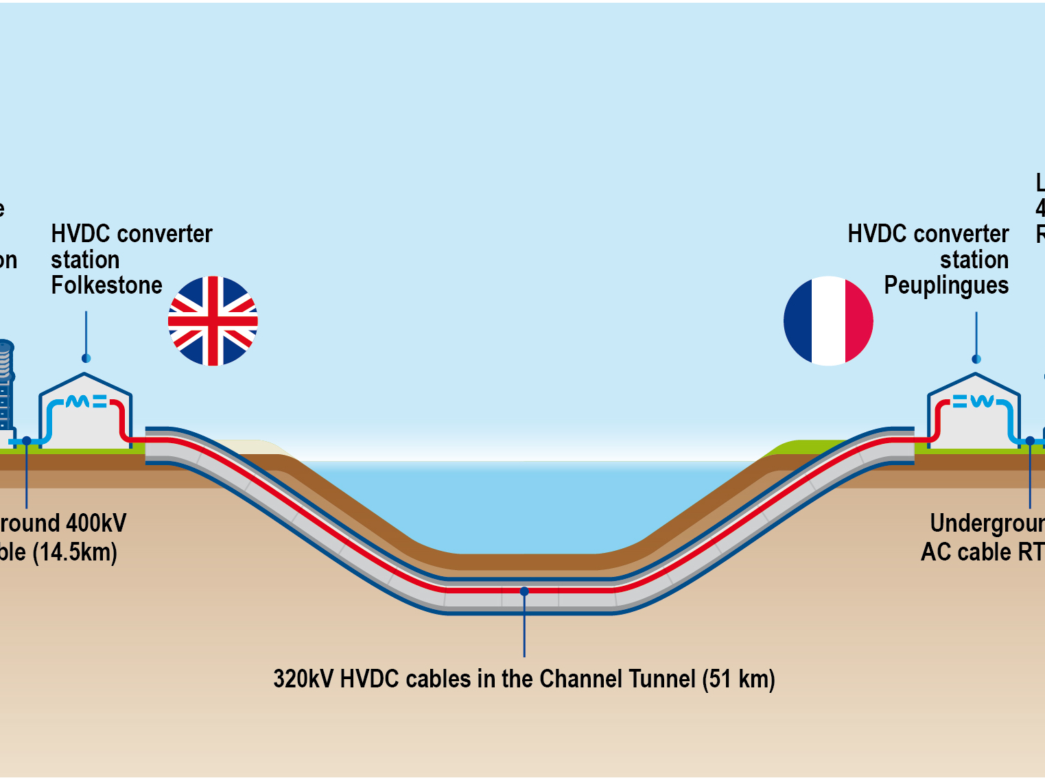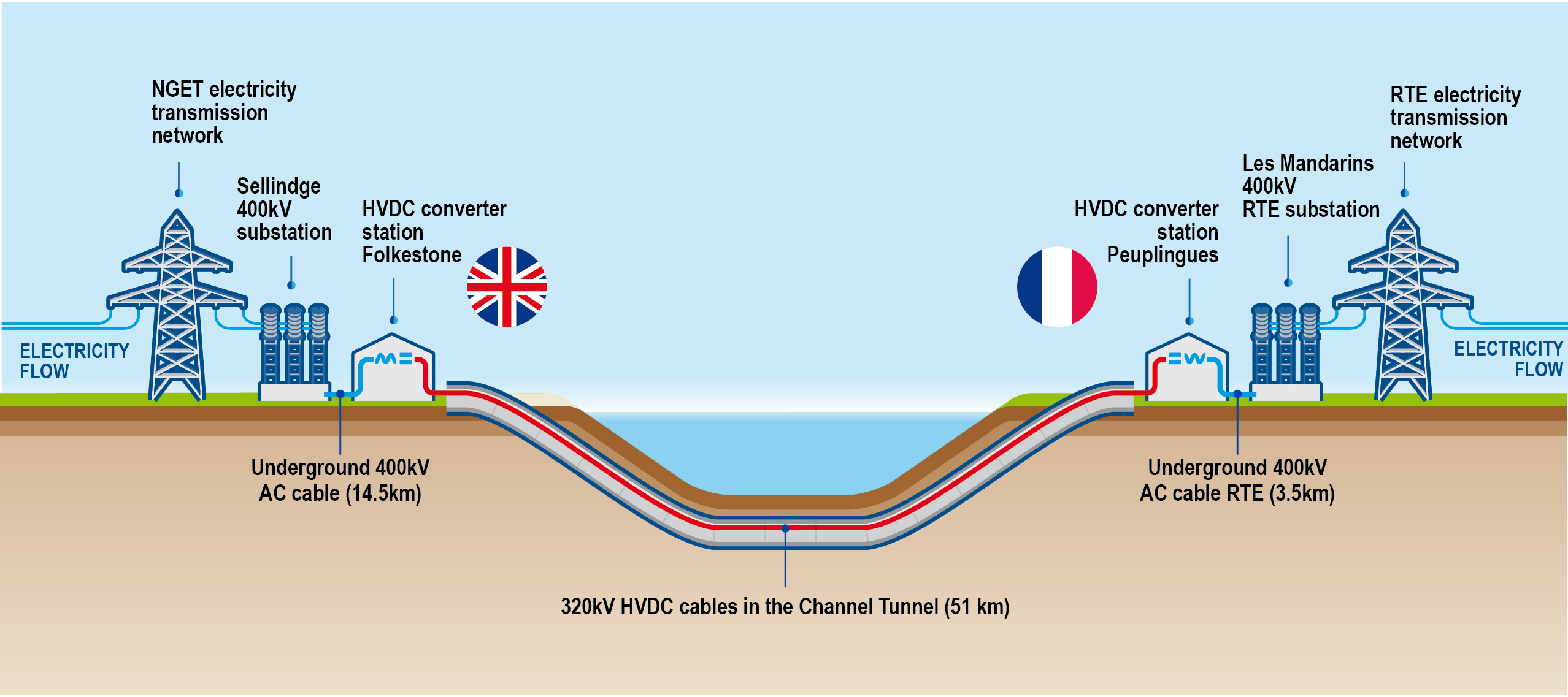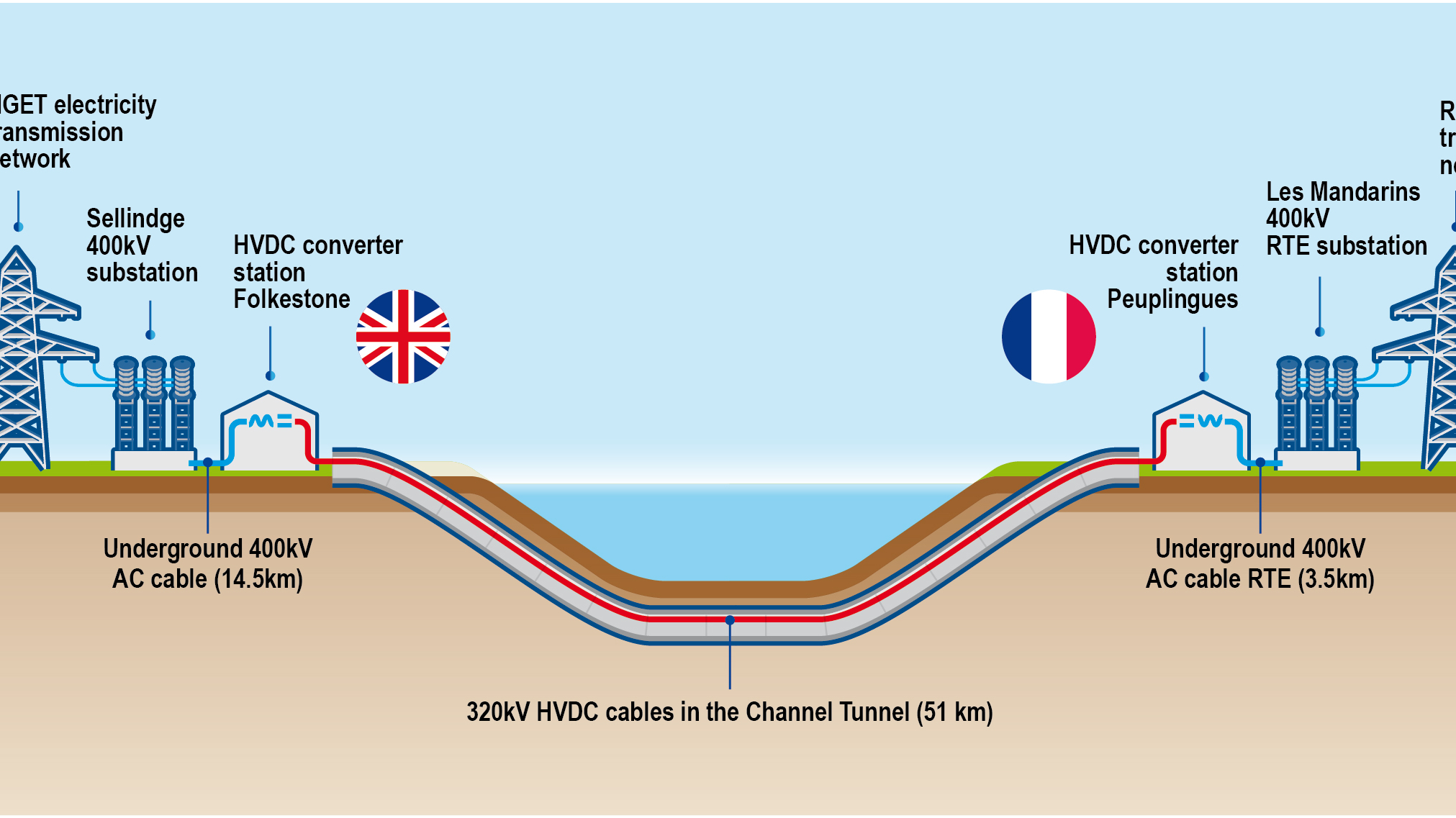 - Diagram of the ElecLink electrical interconnector and its connections to the national electricity transmission networks